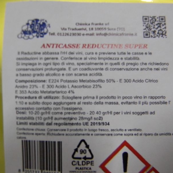 Anticasse reductine super trateaza si previne aparitia oxidarii-casarii vinurilor de toate tipurile.